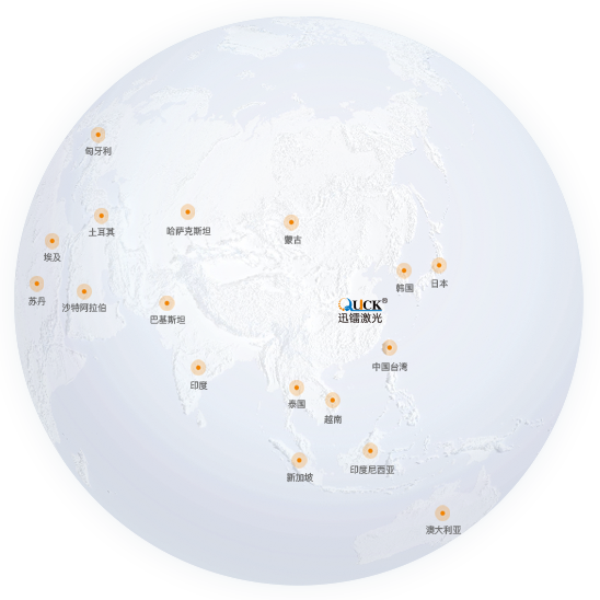 迅鐳激光切割機、激光切管機、激光焊接機等多個系列智能裝備生產線遠銷中國大陸、中國臺灣、美國、加拿大、巴西、英國、法國、德國、匈牙利、阿爾巴尼亞、土耳其、巴基斯坦、印度、新加坡、澳大利亞、韓國、日本、意大利、印度尼西亞、泰國、新西蘭等全球50多個國家和地區。